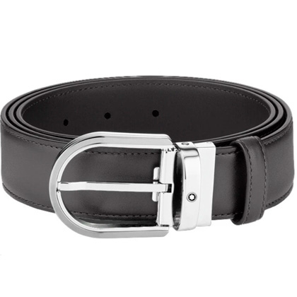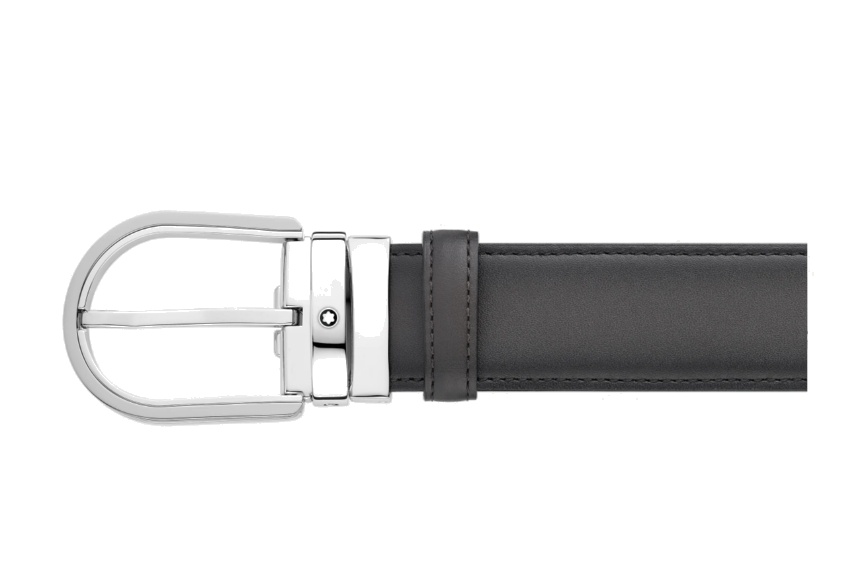 Кожаный ремень с пряжкой в форме подковы серого цвета 35 мм от магазина премиальных ручек Premium Pens в Великом Новгороде.
